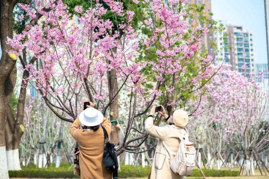 武汉“以花为媒”吸引大量游客。人民网记者 郭婷婷摄一花引得百花开,百花捧出盛景来。三月的武汉春色如潮,从东湖樱园的万树云霞,到街头巷尾不期而遇的满树烂漫,整座江城沉浸于温柔花海,吸引全国游客纷至沓来。