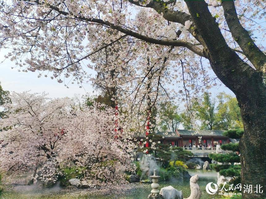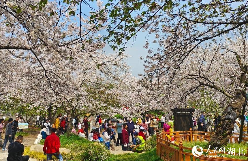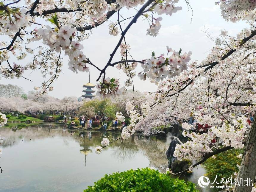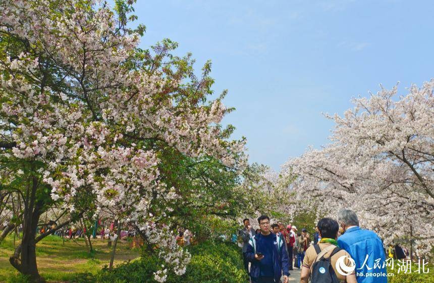 东湖樱园樱花盛放吸引大量游客。人民网记者 郭婷婷摄