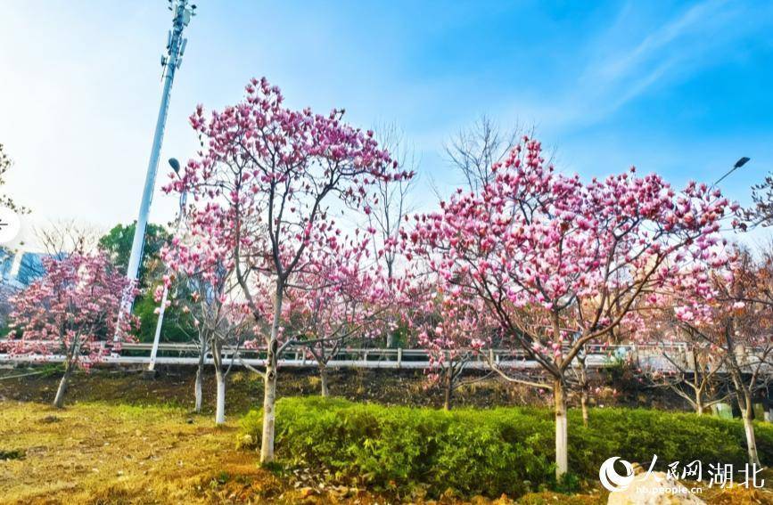武汉高架桥边也种满了玉兰花。人民网记者 郭婷婷摄
