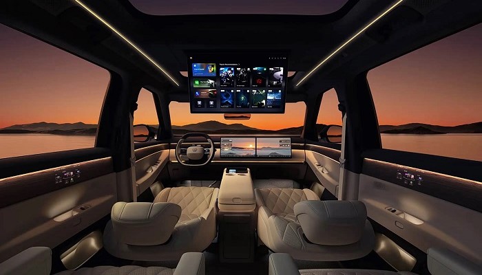 车内部分,新车采用双辐方向盘和怀挡布局,中控区域由8.88英寸仪表屏、双15.6英寸联屏和21.4英寸后排吸顶屏组成,继续围绕家庭多人出行场景展开。音响、冰箱、氛围灯等配置都没有缺席,后门开启角度、座椅与空间变化形式也明显服务于六座SUV用户最看重的上下车便利性和乘坐灵活性。